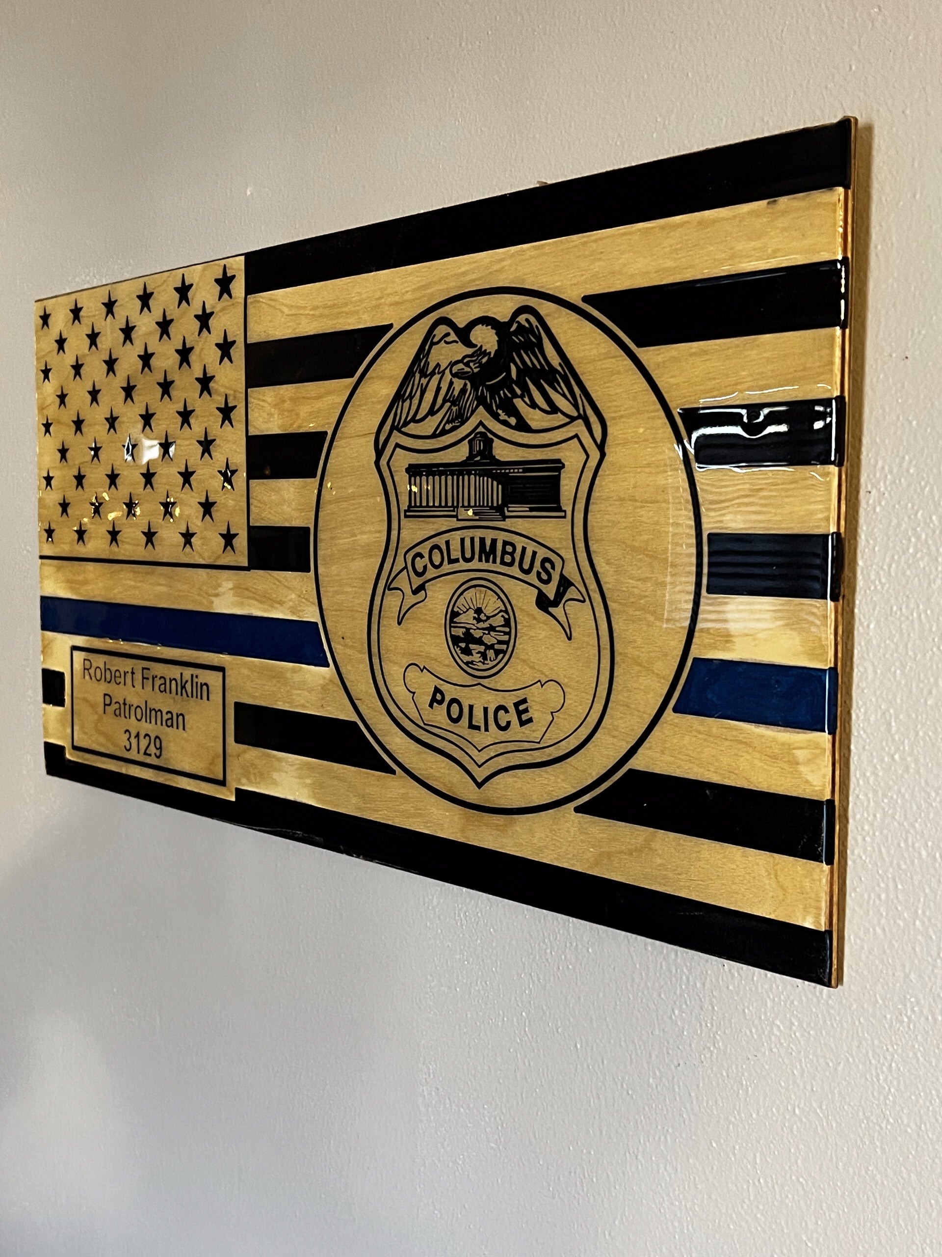 Crafted from 3/4-inch Premium Baltic Birch Plywood, this City Police Fire Flag is CNC precision carved and filled with high‑quality epoxy for crisp detail and long‑lasting durability. The epoxy inlay will not peel, fade, or chip like painted items, ensuring your piece looks sharp for years.